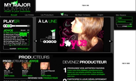 Le principe : être un producteur « participatif » sur le web. Vous êtes le producteur des groupes que vous aimez et que vous propose MyMajor. A partir de là, MyMajor entend développer une activité de maison de musique : concerts, concerts-en-ligne…